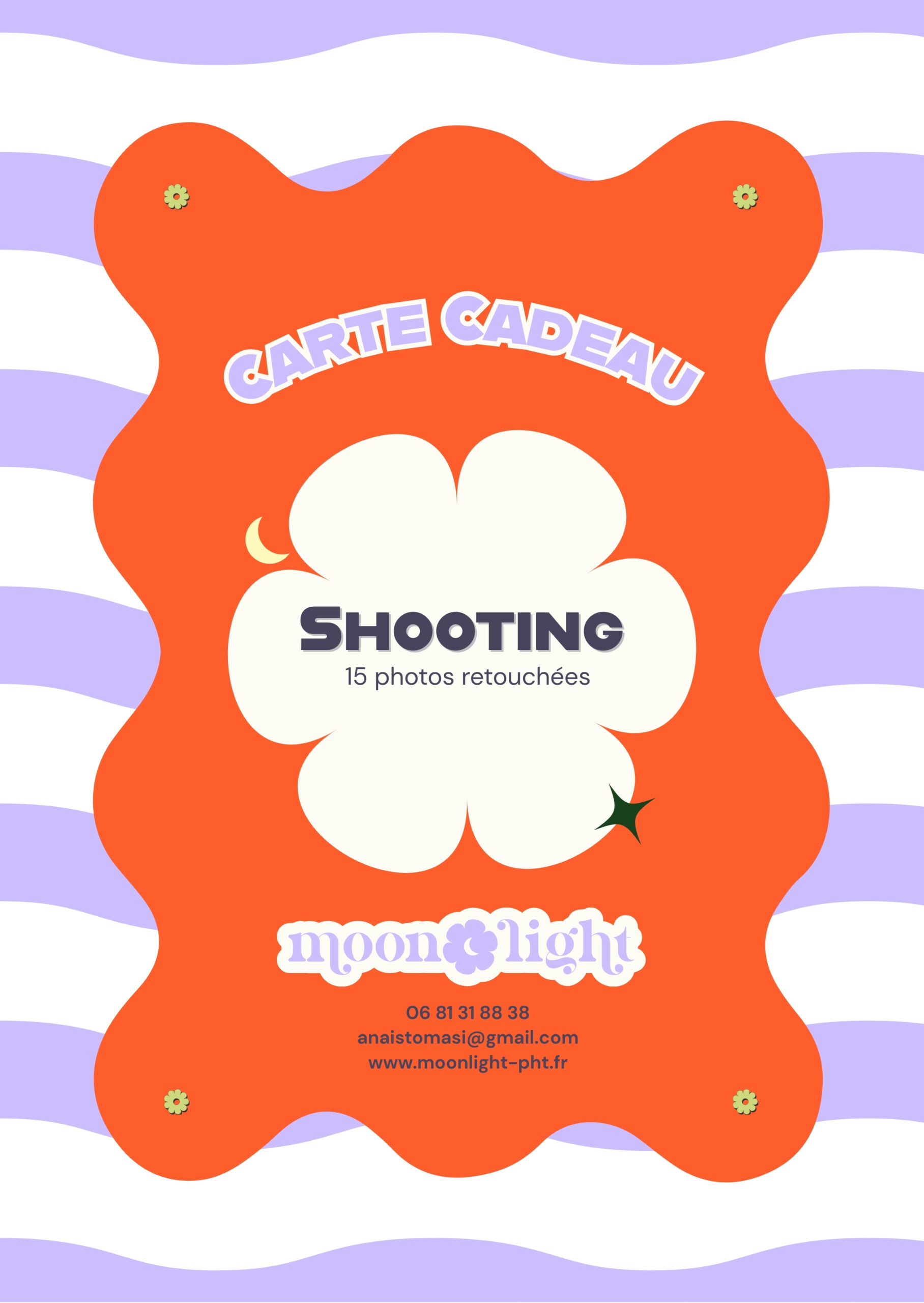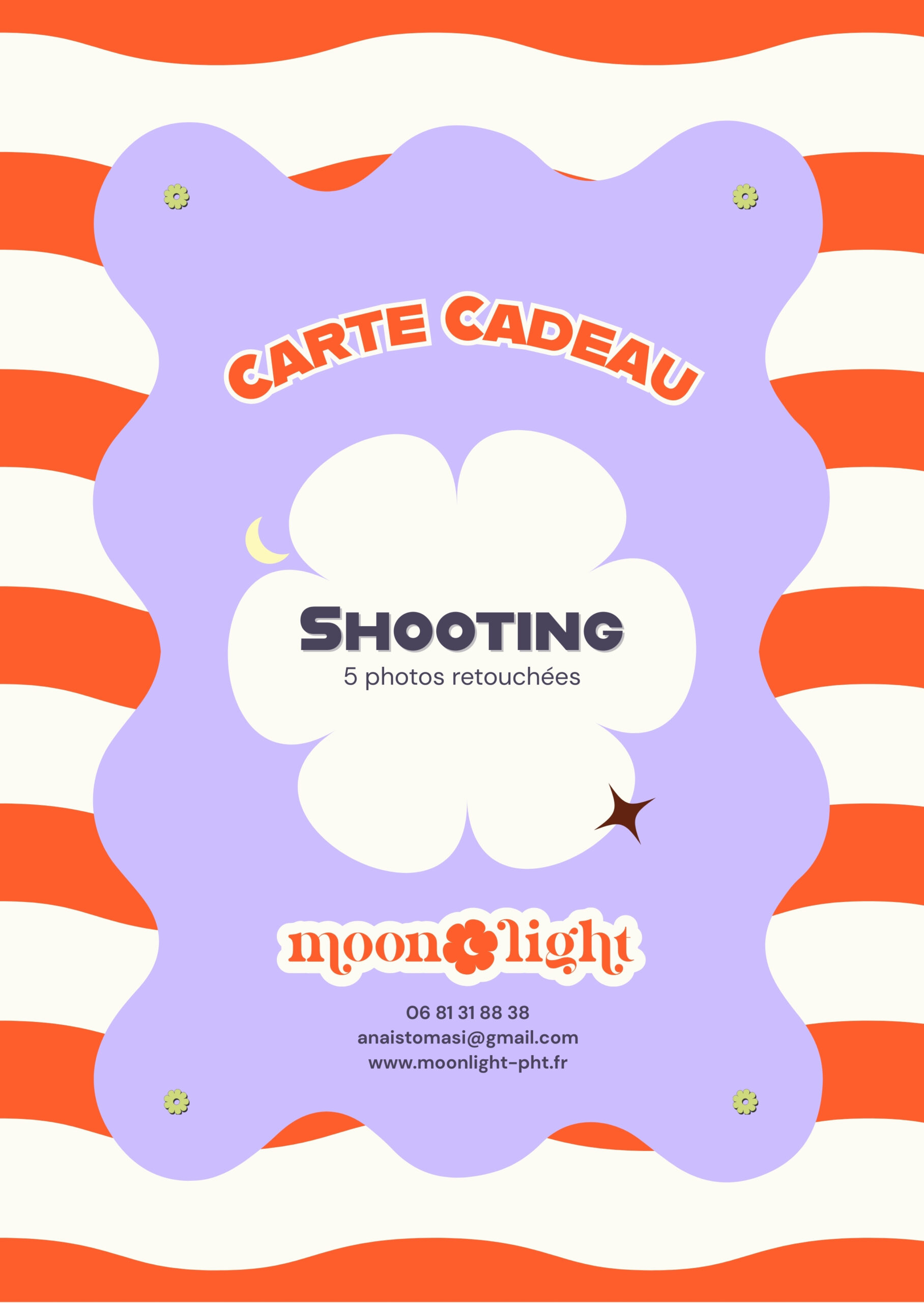 Photographe professionnelle basée en Corse et spécialisée dans la réalisation de shooting photos (en extérieur, intérieur et studio), mariages et baptêmes, évènements sportifs, musicaux ou culturels, vernissages et professionnels. Prendre rendez-vous Photographe Corse Shooting Extérieur : 250€ les 30 photos retouchéesStudio sans décor : 250€ les 30 photos retouchéesStudio avec décor : à partir de 450€ les 30 photos retouchées Prendre rendez-vous Évènementiel Mariages, baptêmes, anniversaires à partir de 200€/heurePhotographie de concert et évènements sportifs : sur devis Devis professionnels Photographie promotionnelle (hôtellerie, restauration), packshots, boutique de prêt-à-porter : sur devis Devis Formules cartes cadeaux 5 photos retouchées en extérieur ou en studio sans décor : 100€ 15 photos retouchées en extérieur ou en studio sans décor : 200€